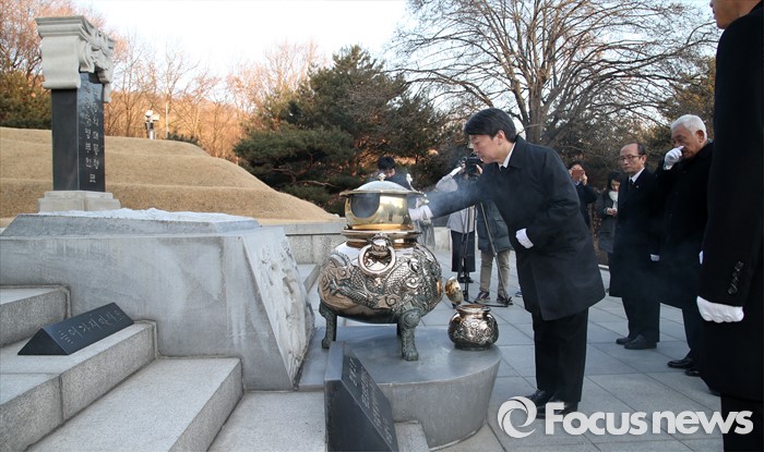 (서울=포커스뉴스) '국민의당' 창당을 추진하는 안철수 의원이 11일 오전 서울 동작구 국립서울현충원 박정희 전 대통령 묘소를 찾아 분향하고 있다.