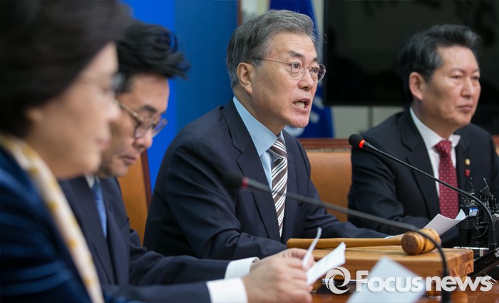 (서울=포커스뉴스) 문재인 더불어민주당 대표가 11일 오전 서울 여의도 국회에서 열린 최고위원회의에 참석해 모두발언을 하고 있다.