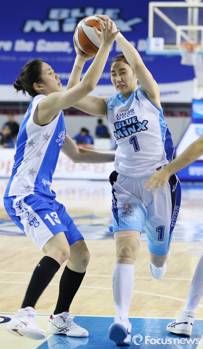 올스타전에서는 3점슛 콘테스트 뿐 아니라 '스피드게임'도 열린다. 스피드게임에는 이선영(우리은행) 안혜지(KDB생명) 김지영(KEB하나은행) 강계리(삼성생명) 이민지(신한은행) 김현아(KB스타즈)가 출전해 빠른 스피드와 함께 볼을 다루는 능력을 겨룬다.(용인=포커스뉴스) 17일 용인실내체육관에서 열린 2015-2016 여자프로농구 삼성생명-우리은행 경기에서 우리은행 이승아가 삼성생명 박하나의 골밑 돌파를 저지하고 있다. 2015.12.17 우정식 기자