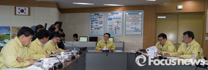 (세종=포커스뉴스) 이동필 농림축산식품부장관이 12일 오전 세종시 농식품부 AI·구제역대책상황실에서 구제역 방역상황 긴급 점검회의를 주재하고 있다.