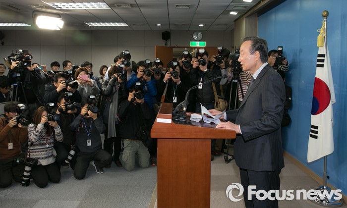 (서울=포커스뉴스) 권노갑 더불어민주당 상임고문이 12일 오전 서울 여의도 국회 정론관에서 탈당 기자회견을 하고 있다.
