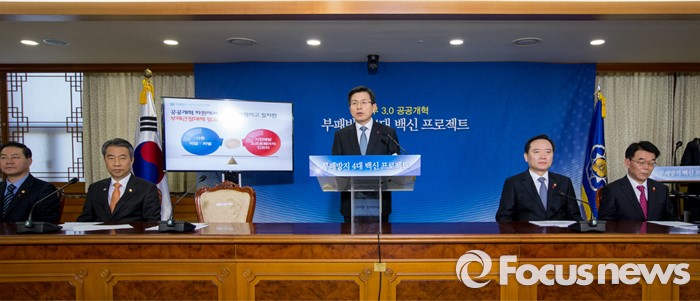 (서울=포커스뉴스) 12일 오전 서울 종로구 정부서울청사에서 황교안 국무총리가 부패방지 4대 백신 프로젝트를 발표하고 있다. 정부는 이날 발표를 통해 실시간 감시, 리스크 관리, 정보상시 공유ㆍ연계, 내부클린시스템의 4대 백신 프로젝트를 2016년 부터 16개 분야, 240조원 운용 규모의 공공시스템에 본격 가동한다고 밝혔다.