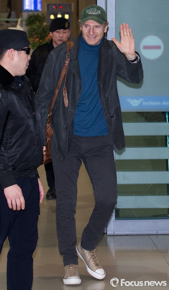 (서울=포커스뉴스) 할리우드 배우 리암 니슨(Liam Neeson)이 11일 영화 ‘인천상륙작전’ 촬영을 위해 아시아나 A380을 타고 뉴욕에서 입국했다.
