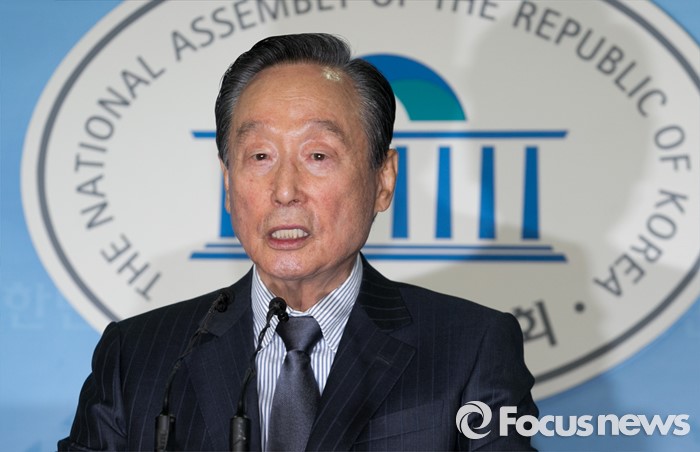 (서울=포커스뉴스) 권노갑 더불어민주당 상임고문이 12일 오전 서울 여의도 국회 정론관에서 탈당 기자회견을 하고 있다.