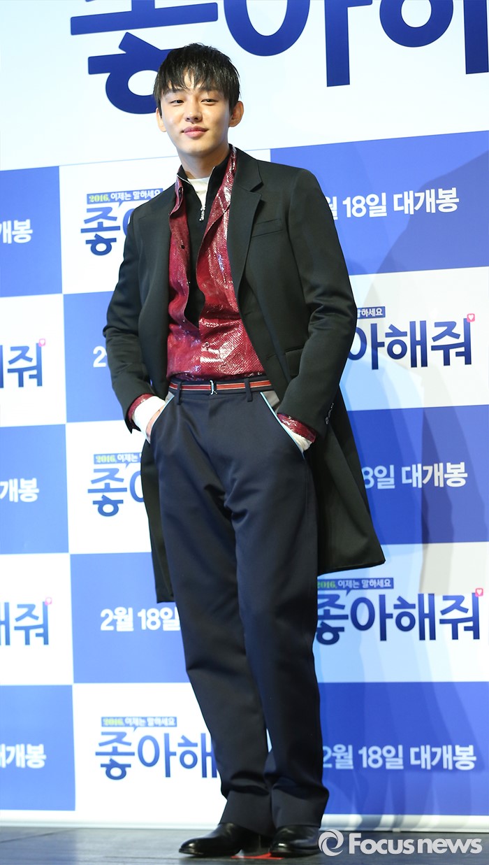 (서울=포커스뉴스) 12일 오전 서울 강남구 압구정 CGV에서 열린 영화 '좋아해줘' 제작보고회에 참석한 배우 유아인이 포토타임을 갖고 있다.