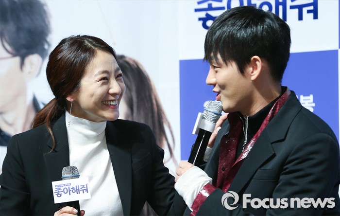 | △ 제작보고회 참석한 배우 이미연과 유아인 |