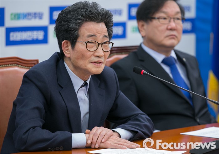 (서울=포커스뉴스) 12일 오후 서울 여의도 국회에서 열린 더불어민주당 누리과정대책특위 1차 회의에 참석한 이목희 정책위의장이 모두발언을 하고 있다. 오른쪽은 특위 위원장을 맡은 김태년 교문위 야당 간사.