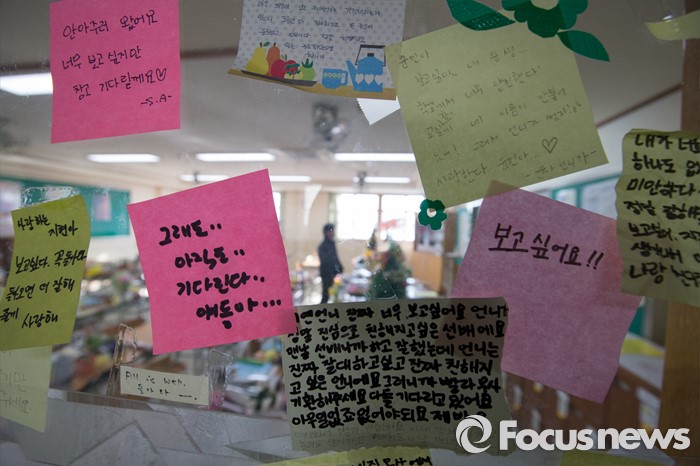 (안산=포커스뉴스) 단원고 생존 학생들의 졸업식이 열린 12일 오후 경기도 안산시 단원고등학교에서 시민들이 교실을 둘러보고 있다.