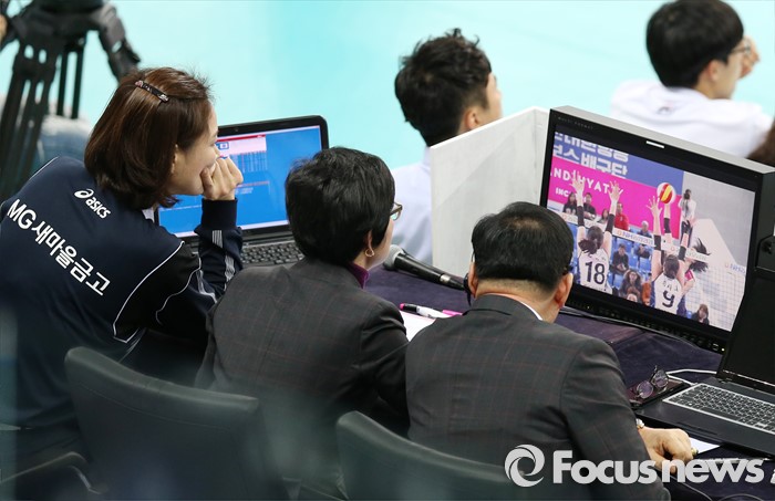 (인천=포커스뉴스) 12일 인천 계양체육관에서 열린 '2015-2016NH농협 V-리그' 여자부 흥국생명-IBK기업은행 경기에서 흥국생명의 요청으로 비디오 판독을 하고 있다.