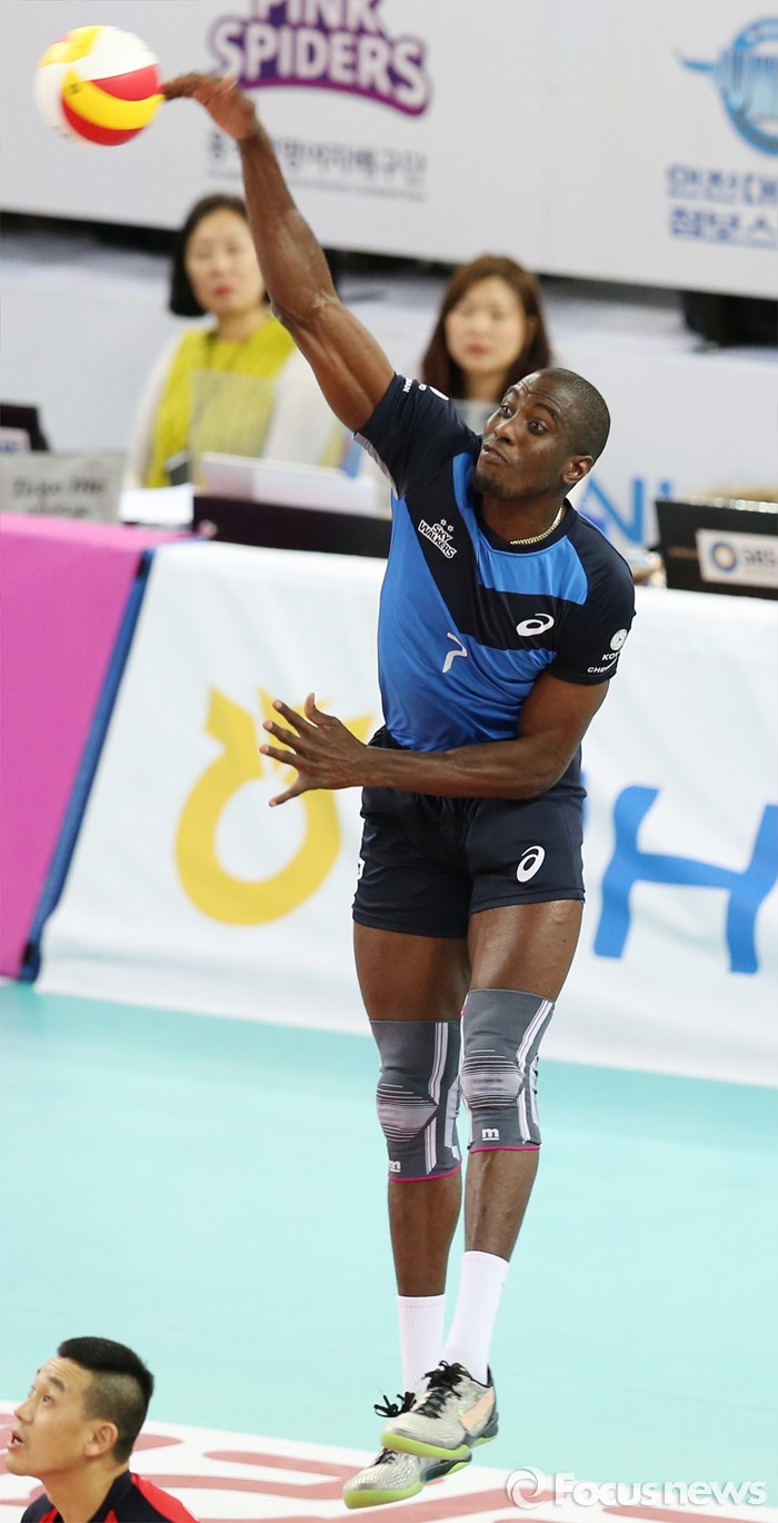 (인천=포커스뉴스) 12일 인천 계양체육관에서 열린 '2015-2016NH농협 V-리그' 남자부 대한항공-현대캐피탈 경기에서 현대캐피탈 오레올이 강한 스파이크 서브를 넣고 있다.