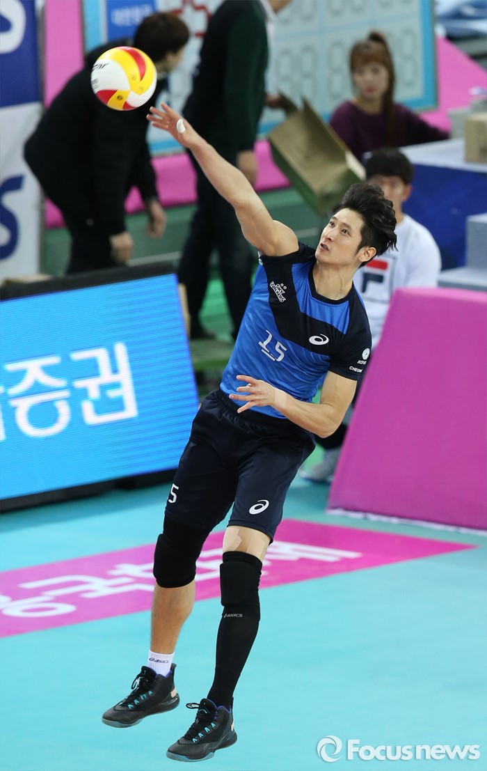 (인천=포커스뉴스) 12일 인천 계양체육관에서 열린 '2015-2016NH농협 V-리그' 남자부 대한항공-현대캐피탈 경기에서 현대캐피탈 문성민이 강력한 스파이크 서브를 넣고 있다.