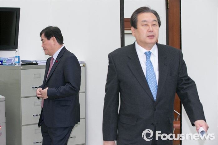 (서울=포커스뉴스) 최경환(왼쪽) 전 경제부총리 겸 기획재정부 장관이 13일 오전 서울 여의도 국회 새누리당 대표최고위원실에서 김무성 대표와 면담을 마친 뒤, 밖으로 나가고 있다.