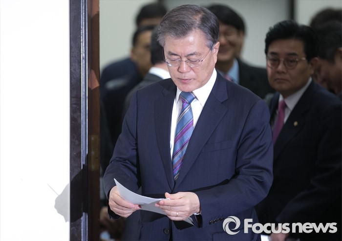 (서울=포커스뉴스) 문재인 더불어민주당 대표가 13일 오전 서울 여의도 국회에서 열린 최고위원회의에 참석하고 있다.