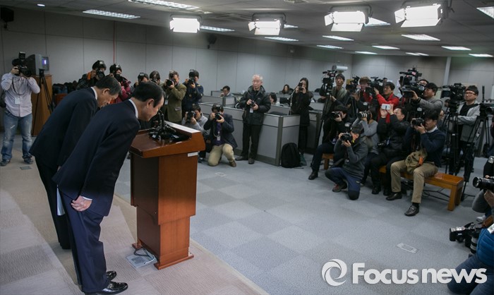(서울=포커스뉴스) 13일 오전 서울 여의도 국회 정론관에서 장병완(오른쪽), 주승용 더불어민주당 의원이 탈당 기자회견을 마친 뒤 인사하고 있다.