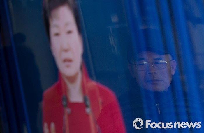 (서울=포커스뉴스) 13일 오전 서울역 대합실에서 시민들이 박근혜 대통령의 대국민 담화 및 기자회견을 시청하고 있다.