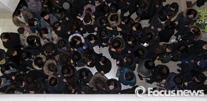 (서울=포커스뉴스) 누리과정 예산을 포함한 올해 예산안 심의를 위한 임시회 본회의 예정일인 13일 오전 경기도의회에서 경기도사립유치원연합회 회원들이 더불어민주당 의원총회가 열리는 대회의실 문 앞을 막고 있다.