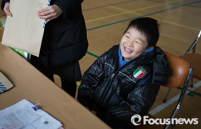 (서울=포커스뉴스) 초등학교 신입생 예비소집일인 13일 오후 서울 용산구 이태원초등학교에서 입학 안내서를 받으러 온 예비 초등학생이 선생님 앞에서 웃고 있다.