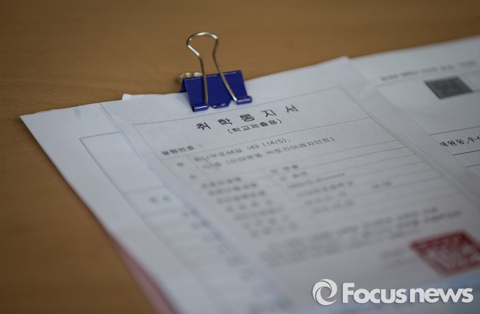 (서울=포커스뉴스) 13일 오후 서울 용산구 이태원초등학교에서 초등학교 신입생 예비소집 행사가 열렸다. 예비소집 취학 통지서가 책상 위에 놓여져 있다.