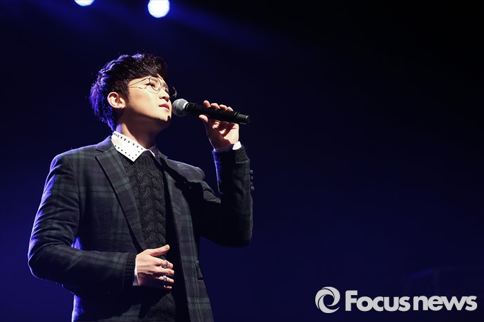 (서울=포커스뉴스) 13일 오후 서울 강남구 일지아트홀에서 열린 남성 3인조 그룹 V.O.S의 미니앨범 'Re:Union, The Real' 쇼케이스에 참석한 멤버 최현준이 신곡 '그 사람이 너니까'의 무대를 선보이고 있다.