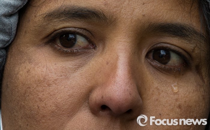 (서울=포커스뉴스) 13일 오후 서울 종로구 옛 일본대사관 앞에서 열린 제1213차 정기수요집회 앞서 열린 한일 일본군 위안부 합의 무효 기자회견에 참가한 외국이 일본군 위안부 피해자 강일출 할머니가 발언을 경청하며 눈물을 흘리고 있다.