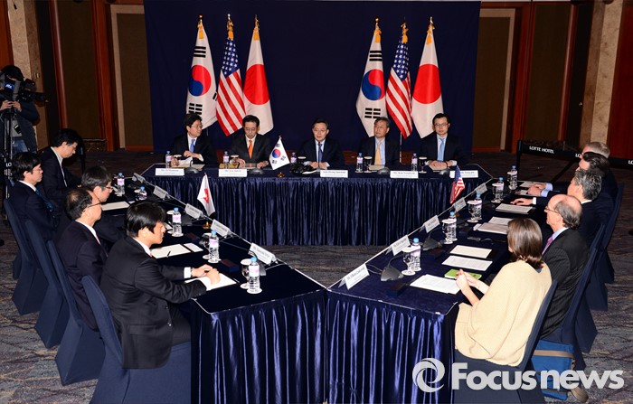 (서울=포커스뉴스) 한미일 6자회담 수석대표가 13일 오후 서울 소공동 롯데호텔에서 북핵 대응 방안에 대한 논의를 하고 있다.
