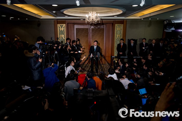 (서울=포커스뉴스) 이시카네 기미히로 일본 아시아대양주국장이 13일 오후 서울 중구 롯데호텔에서 열린 '한미일 6자회담 수석대표 긴급회동'에 자리해 북한 4차 핵실험 강행 관련 대북제재 방안 논의를 마친 뒤 입장발표를 하고 있다.