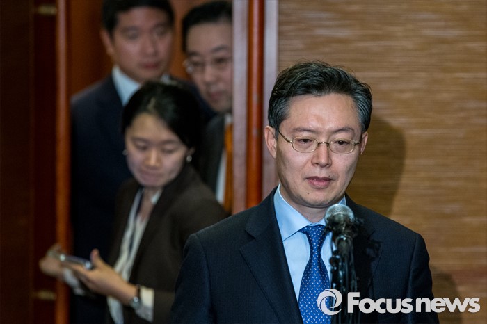 (서울=포커스뉴스) 황준국 외교부 한반도평화교섭본부장이 13일 오후 서울 중구 롯데호텔에서 열린 '한미일 6자회담 수석대표 긴급회동'에 자리해 북한 4차 핵실험 강행 관련 대북제재 방안 논의를 마친 뒤 회동장을 나서고 있다.