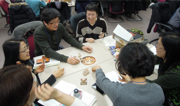 제3기 연수에는 전국 교사와 전문 상담사 등 총 375명이 참석했다. 다음 주에 개최되는 제4기 연수를 포함하면 연간 총 1349명(교사 1020명, 전문 상담사 329명)이 게임 리터러시 교육을 이수하게 된다.문화체육관광부는 지난 11~13일 대전 서구 KT인재개발원에서 '게임 리터러시를 통한 건전 게임문화 직무연수(제3기)'를 진행했다. 사진은 연수에 참여한 교사들이 분반 교육을 하고 있는 모습이다.<사진제공=문화체육관광부>
