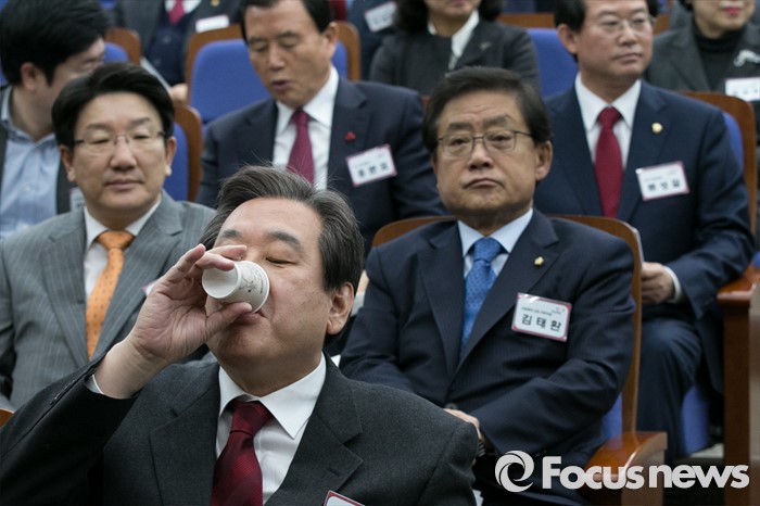 (서울=포커스뉴스) 김무성 새누리당 대표가 14일 오전 서울 여의도 국회에서 열린 제7차 상임전국위원회에 참석해 물을 마시고 있다.