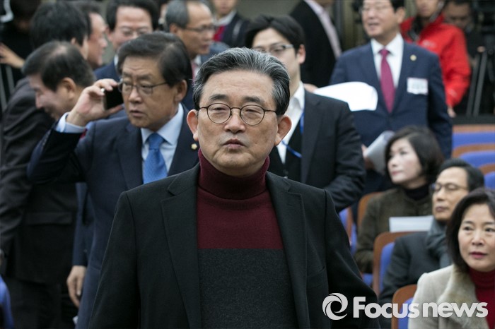 (서울=포커스뉴스) 이한구(앞) 새누리당 전국위원회 의장이 14일 오전 서울 여의도 국회에서 열린 제7차 상임전국위원회에 참석하고 있다.