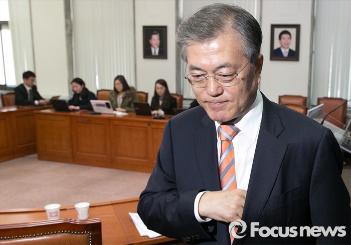 (서울=포커스뉴스) 문재인 더불어민주당 대표가 14일 오전 서울 여의도 국회에서 인재영입 기자회견을 마친 뒤 박근혜 대통령 대국민 담화 관련 취재진 질문에 답한 후 퇴장하고 있다.