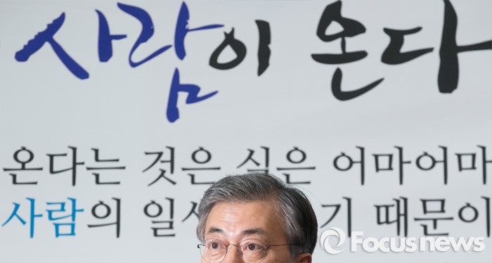 (서울=포커스뉴스) 문재인 더불어민주당 대표가 14일 오후 서울 여의도 국회에서 지난 2012년 대선 당시 박근혜 대통령의 경제민주화 공약을 만든 김종인 전 의원을 조기선대위원장으로 영입한 것과 관련 기자간담회를 하고 있다.