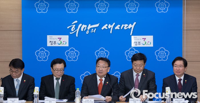 왼쪽부터 강호인 국토교통부장관, 이동필 농림축산식품부장관, 유일호 부총리, 주형환 산업통상자원부장관, 김영석 해양수산부장관.