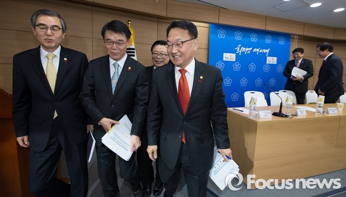 (세종=포커스뉴스) 유일호 경제부총리 겸 기획재정부장관이 14일 오후 세종시 정부세종청사 기획재정부 브리핑룸에서 내수·수출의 균형을 통한 경제활성화 관계부처 합동브리핑을 마치고 브리핑장을 나서고 있다.