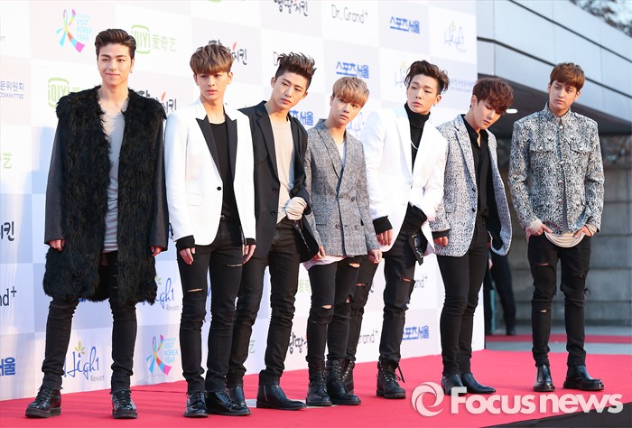 (서울=포커스뉴스) 14일 오후 서울 송파구 올림픽 체조경기장에서 열린 '25회 하이원 서울가요대상' 시상식에 참석한 아이돌 그룹 아이콘의 멤버들이 포토타임을 갖고 있다.