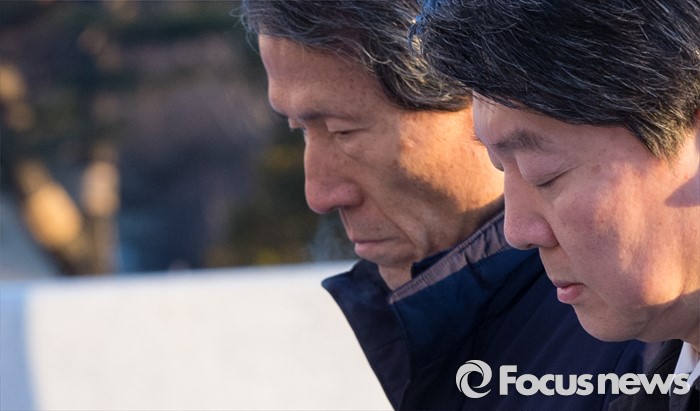 국민의당 측도 '특별히 언급할 것이 없다'는 답변을 내놓았지만, 내부적으로는 긴장감을 늦추지 않고 있는 것으로 알려졌다.14일 오전 서울 강북구 국립 4.19 민주묘지를 찾은 한상진(왼쪽 부터) 국민의당 창당준비위원장과 안철수 인재영입위원장이 분향 후 묵념하고 있다. 2016.01.14 양지웅 기자