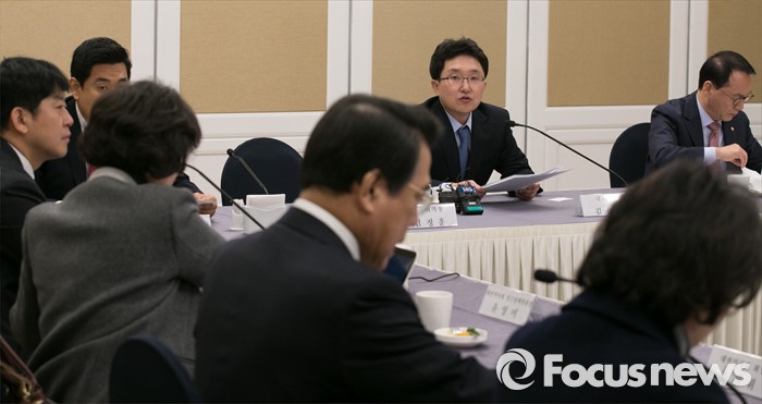 (서울=포커스뉴스) 15일 오전 서울 여의도 국회 귀빈식당에서 열린 카드수수료 관련 간담회에서 정무위원회 여당 간사인 김용태 새누리당 정책위부의장이 모두발언을 하고 있다. 이날 간담회는 최근 카드사들이 중·대형 가맹점들에 수수료 인상을 통보한 것과 관련 업계 의견을 청취하기 위해 진행됐으며 한국외식업중앙회, 대한약사회, 서울남서부슈퍼마켓협동조합, 소상공인연합회 등이 참석했다.