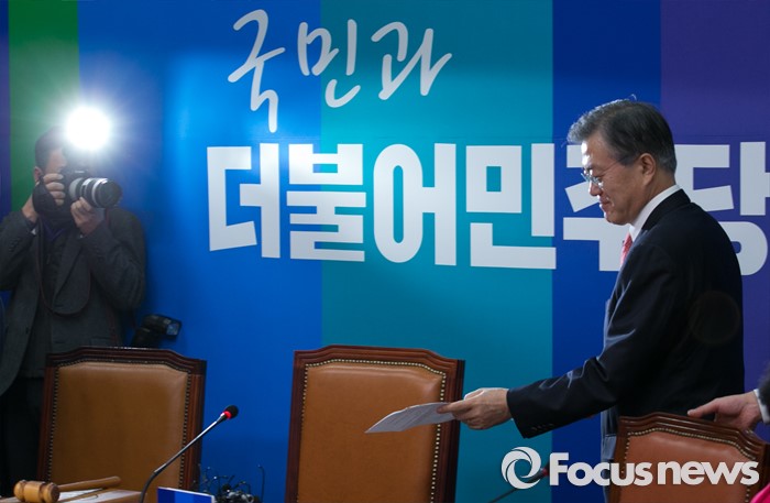 (서울=포커스뉴스) 문재인 더불어민주당 대표가 15일 오전 서울 여의도 국회에서 열린 최고위원회의에 참석하고 있다.