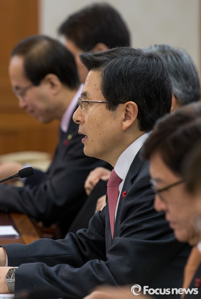 (서울=포커스뉴스) 15일 오전 서울 종로구 정부서울청사에서 열린 국가정책조정회의에 참석한 황교안 국무총리가 모두발언 하고 있다.