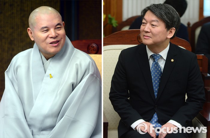 (서울=포커스뉴스) 국민의당 안철수 인재영입위원장이 15일 오전 서울 종로구 한국불교역사문화기념관을 찾아 불교 조계종 자승 총무원장과 새해 인사를 하고 있다.
