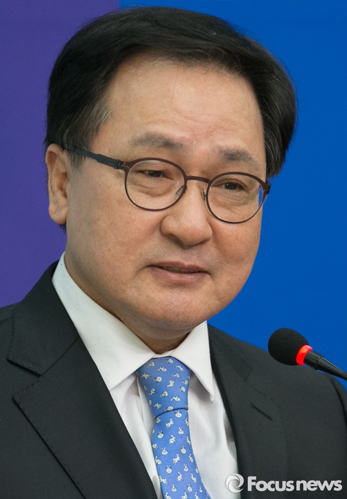 (서울=포커스뉴스) 유명민 전 포스코 경영연구소 사장이 15일 오후 서울 여의도 국회에서 더불어민주당 인재영입 기자회견에 참석해 인사말을 하고 있다.