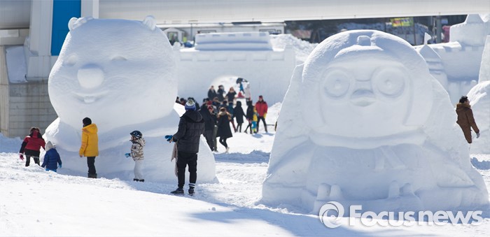 (평창=포커스뉴스) 15일 오후 강원도 평창군 횡계리 일대에서 열린 대관령 눈꽃축제를 찾은 관람객들이 전시된 눈 조각 작품들을 감상하며 즐거운 시간을 보내고 있다. 이번 행사는 오는 15일 시작해 내달 10일 강원 평창군 횡계리 일대에서 열린다.