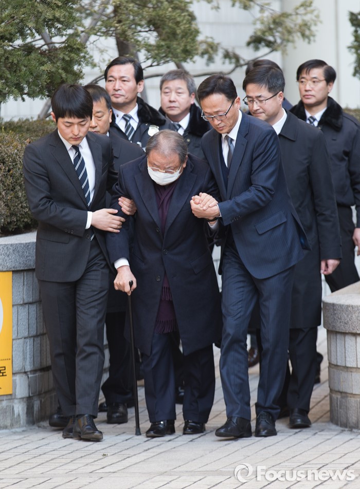 (서울=포커스뉴스) 조세포탈과 횡령·배임 등의 혐의로 기소된 조석래 효성그룹 회장이 15일 오후 서울 서초구 서울중앙지법에서 열린 1심 선고 공판을 끝내고 법정을 나서고 있다.