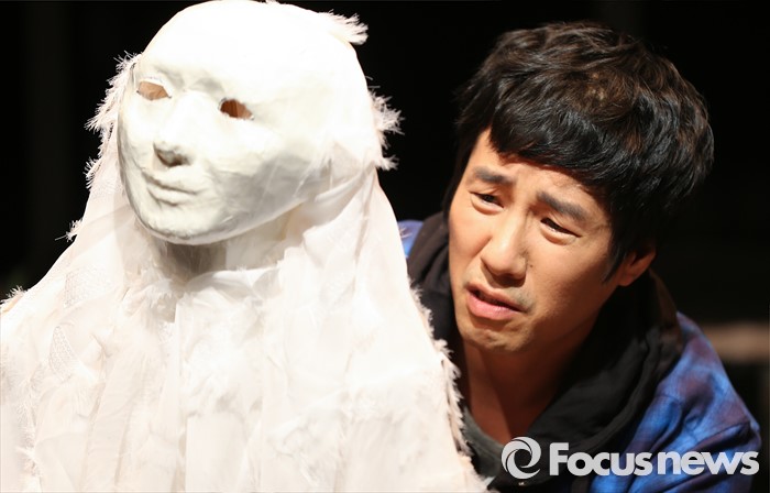 (서울=포커스뉴스) 15일 오후 서울 종로구 예그린씨어터에서 열린 연극 '박웅의 수상한 수업' 프레스콜에 참석한 배우 김재만이 공연을 선보이고 있다.