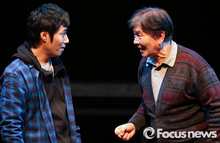 (서울=포커스뉴스) 15일 오후 서울 종로구 예그린씨어터에서 열린 연극 '박웅의 수상한 수업' 프레스콜에 참석한 배우 김재만(왼쪽)과 박웅이 공연을 선보이고 있다.