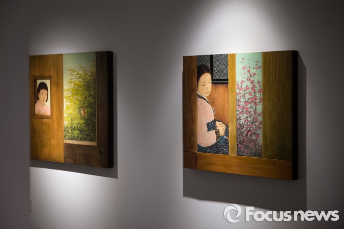 (서울=포커스뉴스) 15일 오후 서울 용산구 갤러리 조은에서 김덕용, 전병현 작가 초대전이 열리고 있다. 갤러리에 걸려있는 김덕용 작가의 작품, '봄의 시작'(왼쪽)과 '기안'