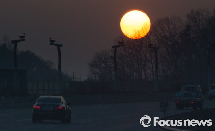 (용인=포커스뉴스) 매섭던 추위가 한풀 꺾이며 포근한 주말이 예상되는 15일 오후 경기 용인시 처인구 양지터널 인근에서 일몰이 관측되고 있다.
