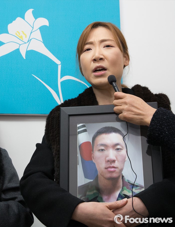 (서울=포커스뉴스) 16일 오후 서울 서대문구 군피해치유센터 '함께' 개소식에서 故 신성민 상병 둘째누나 신미희 씨 가 인사말을 하고 있다.