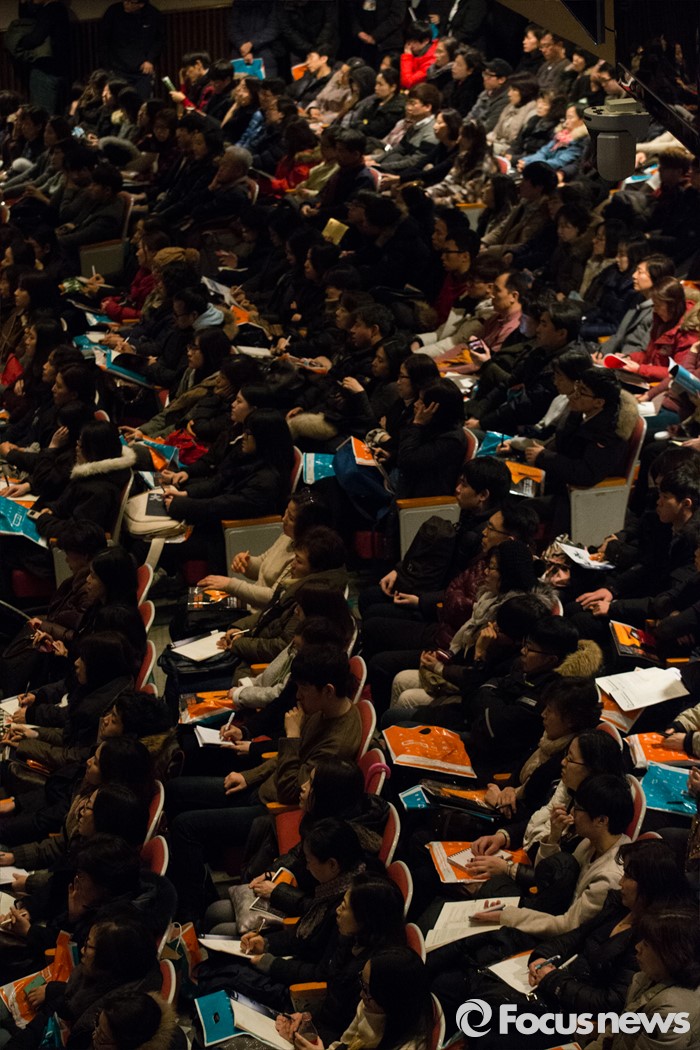 (서울=포커스뉴스) 16일 오후 서울 강남구 숙명여고 대강당에서 열린 '대성학원 재수성공전략 설명회'에서 학생과 학부모들이 성공전략을 경청하고 있다.