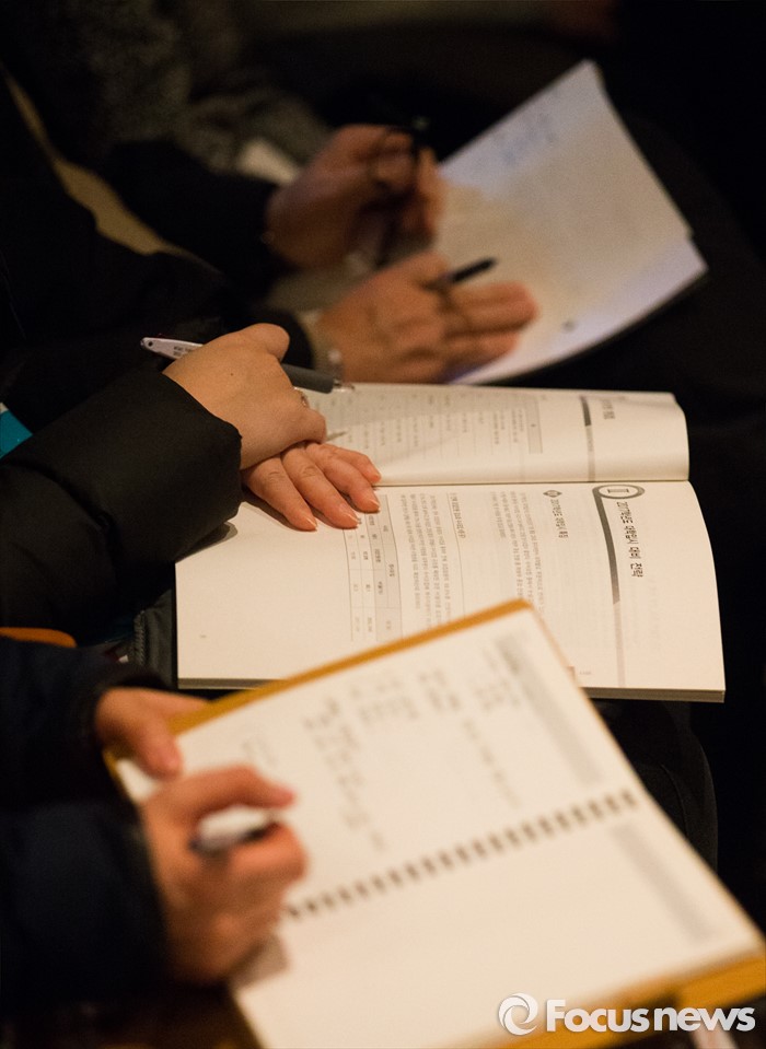 (서울=포커스뉴스) 16일 오후 서울 강남구 숙명여고 대강당에서 열린 '대성학원 재수성공전략 설명회'에서 학생과 학부모들이 성공전략을 경청하고 있다.
